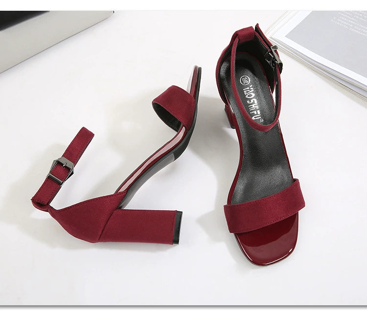 Women 2023 Summer Fashion Sandals Medium High Heel Block Hee